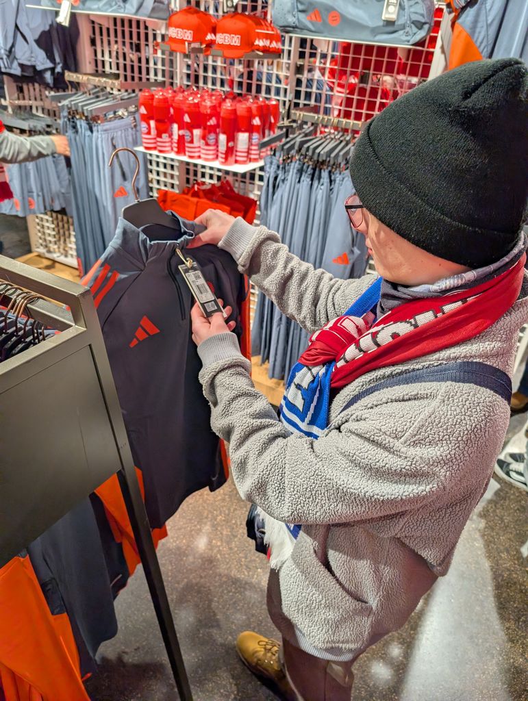 Neben dem Geschehen auf dem grünen Rasen gab es abseits des Spielfelds ein weiteres großes Highlight: Ein Besuch im riesigen FC Bayern Store durfte natürlich nicht fehlen. In aller Ruhe stöbern, die neuesten Trikots bewundern und sich ein persönliches Andenken an diesen Tag aussuchen - das Leuchten in den Augen unseres Bewohners war dabei mindestens so hell wie das Flutlicht im Stadion. Das Personal wurde kurzerhand als Kleiderständer und Tütenschlepper umgeschult :)