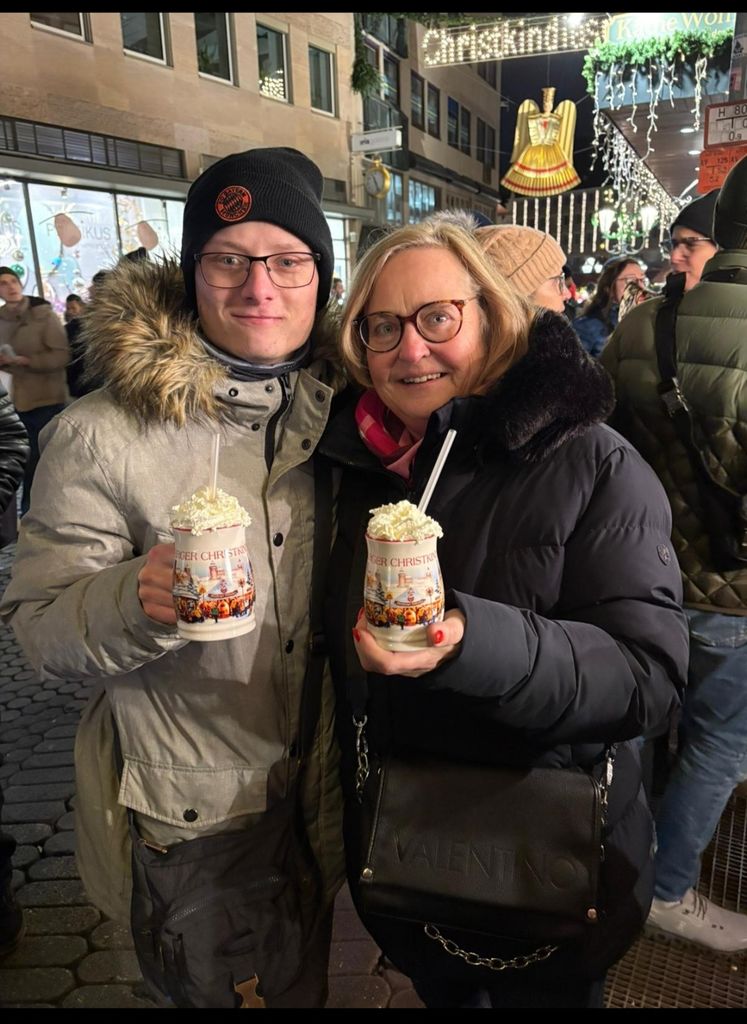 Besonders eindrucksvoll war auch die wunderschöne Weihnachtsbeleuchtung in der gesamten Innenstadt und der berühmte „Balkon des Nürnberger Christkindls“. Natürlich durften auch die kulinarischen Klassiker nicht fehlen: Alle genossen die traditionellen „Drei im Weggla“ und wärmten sich mit einer heißen Schokolade auf.
