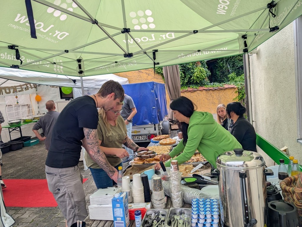 Das für die Vorbereitung und Durchführung verantwortliche Personal von Haus Frauenricht sowie die Besucher ließen sich aber die gute Laune dadurch nicht verderben. Für ausgelassene Stimmung sorgte zusätzlich DJ Toni, der mit seiner Karaoke-Anlage zum Mitsingen eingeladen hatte. Kaffee und selbstgebackene Kuchen aus den verschiedenen Häusern in Region Wernberg bildeten den kulinarischen Startschuss. Das Highlight waren jedoch die von einem Cateringservice gelieferten warmen Speisen, die zusammen mit den selbst zubereiteten Salaten ein wahres Feuerwerk für den Gaumen entfachten. In diesem feierlichen Rahmen durfte natürlich auch die Ehrung langjähriger Bewohnerinnen und Bewohner durch Einrichtungsleitung Heidi Kühn nicht fehlen.