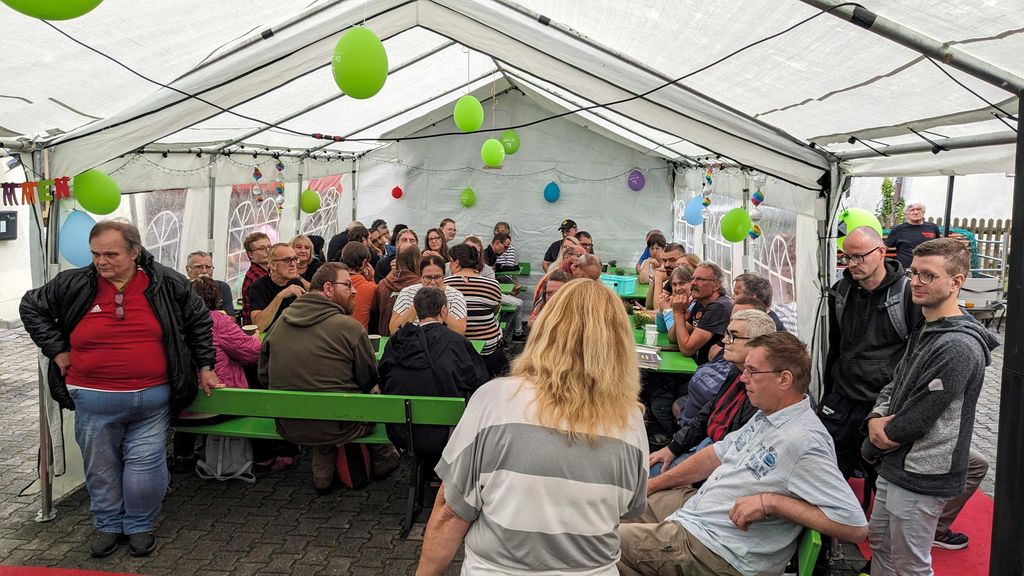 Der Austragungsort unseres Sommerfests in Region Wernberg war heuer das Haus Frauenricht in Weiden. Dieses wurde von Oktober 2024 bis Juli 2025 umfassend renoviert und so staunten die Besucher des Festes nicht schlecht, als sie unsere neuen Räumlichkeiten zum ersten Mal besichtigen konnten.Leider spielte das Wetter an diesem Tag nicht mit und wir mussten schon vor Festbeginn mit häufigen Regenschauern kämpfen. Ein Glück, dass wir das Zelt im Hof und nicht – wie ursprünglich geplant – im Garten aufgebaut hatten!