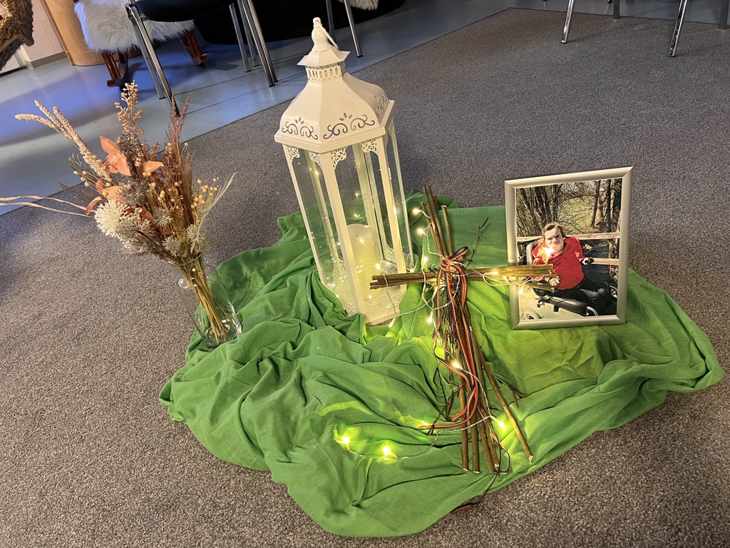 Nach einer Begrüßung und einen kurzen Lebenslauf, wurde das Lied „Meine Zeit steht in deinen Händen“ gespielt. Einige Bewohner*innen haben mitgesungen. Anschließend wurde der Text „Letzter Weg…“ vorgelesen.