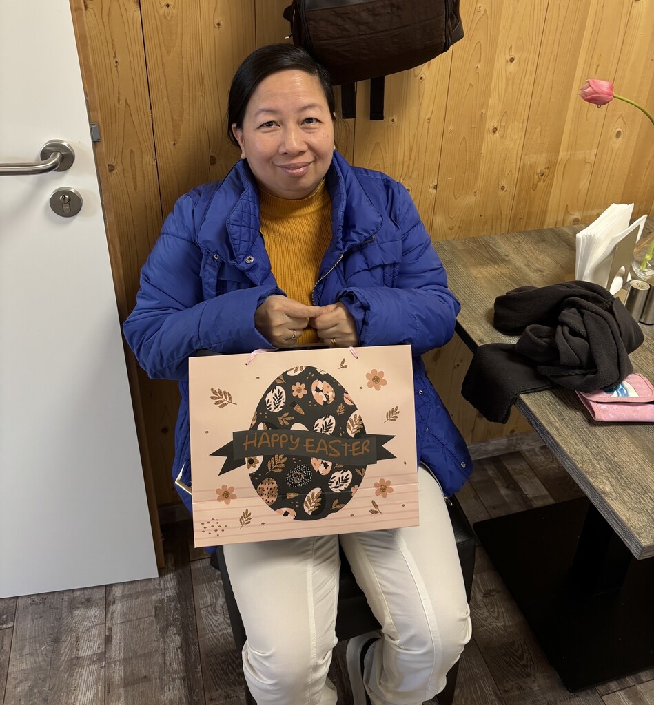 Der letzte Tag vor dem langen Osterwochenende wurde in den TSM besonders gestaltet.Neben einem leckeren Osterbrunch durften sich unsere Bewohner*innen am Donnerstag auch über kleine Ostergeschenke freuen: Für sie hat der Osterhase einen Gutschein und ein paar süße Kleinigkeiten hier gelassen.