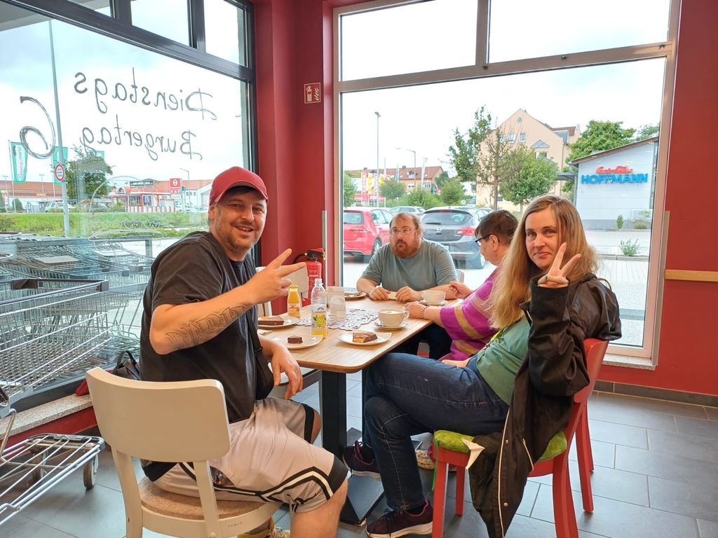 Am Donnerstag wurden die Geburtstagskinder der Monate April bis Juli eingeladen.Die Bewohner*innen durften dafür mit Mitarbeiterin Julia in ein nahelegenes Café fahren und es sich bei einem Getränk und einem Gebäckstück so richtig gut gehen lassen.