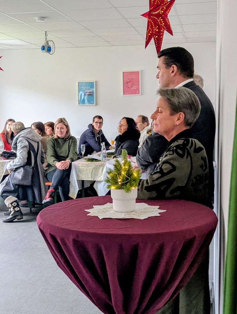 Am 27.11.2025 wurde im 2020 bezogenen Neubau der Bleistädter Straße das 30. Jubiläum der am 01.08.1995 eröffneten Einrichtung Schwandorf in Form eines Weihnachtsmarktes im Beisein von ca. 80 geladenen Gästen feierlich begangen.Nach kurzem Empfang folgten Grußworte durch die Geschäftsführung Frau Sandra Loew, OB Herrn Feller, Landrat Herrn Ebeling und EL Herrn Heitzer. Stimmungsvoll begleitet wurde die Eröffnung durch Herrn Geyer von der hiesigen Musikschule.