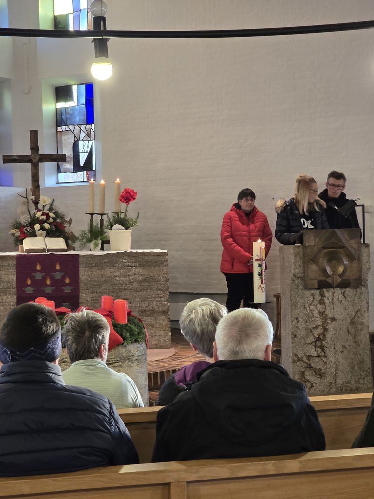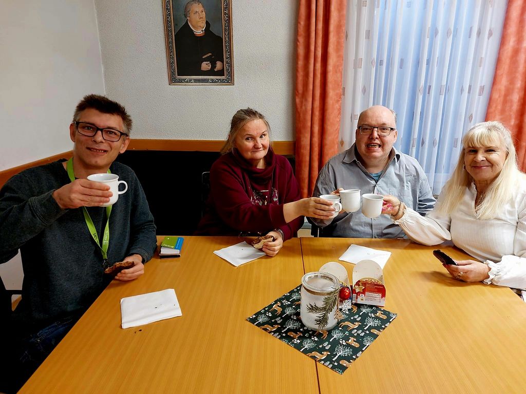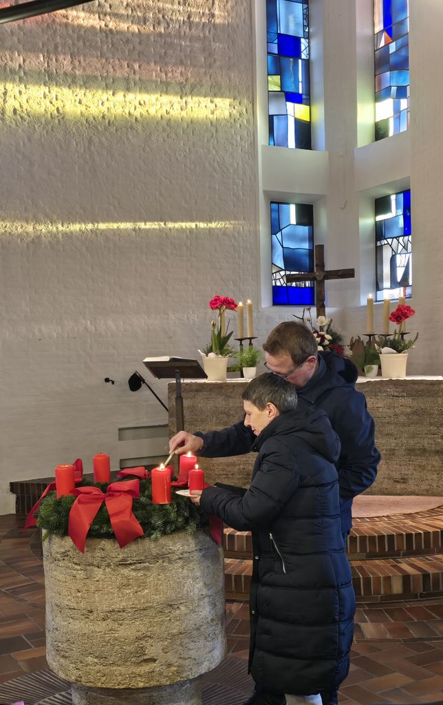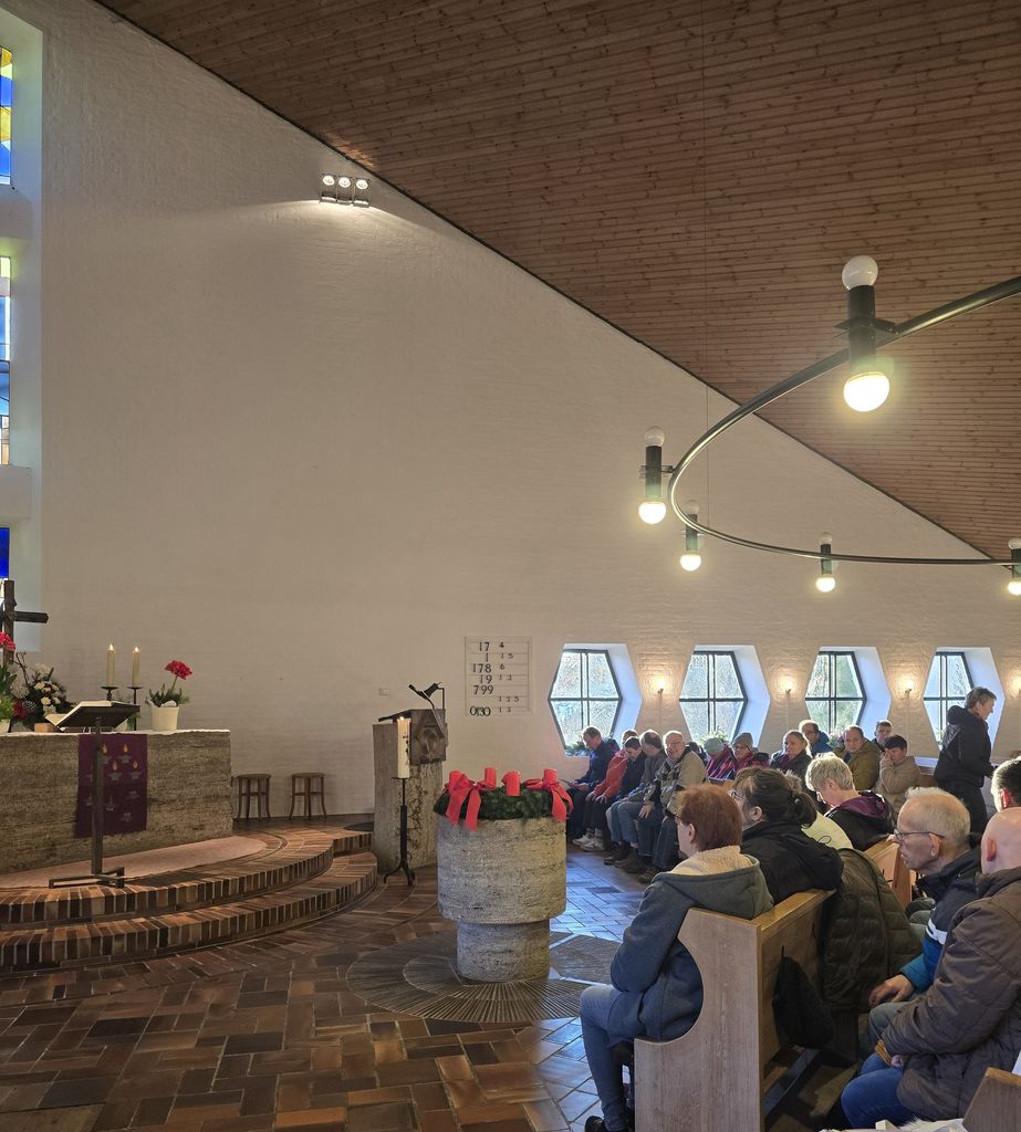 Advent, Advent, das vierte Lichtlein brenntHeute Nachmittag trafen wir uns zu einer besinnlichen Adventsandacht in der Auferstehungskirche der Evangelisch- Lutherischen Gemeinde Oberviechtach. Gemeinsam mit unseren Freunden aus den Häusern Jägerhof, Fuchsenschleife und Vohenstrauß freuten wir uns über den herzlichen Empfang durch Pfarrer Philpp Albin Fischer und genossen die friedvolle Atmoshäre. Wir sangen gemeinsam Lieder, beteten und sprachen Fürbitten. Am Adventskranz wurden die vier Kerzen angezündet. Jede Kerze hat ihre Bedeutung, die 1. Kerze steht für Vertrauen, die 2. Kerze für Freude, die 3. Kerze für Frieden und die 4. Kerze für Hoffnung. Im Anschluss gingen wir alle noch in den Gemeindesaal, wo bei lecker Punsch und Lebkuchen gute Gespräche stattfanden. Ein herzliches Dankeschön an Herrn Pfarrer Fischer, sowie den Bläsern, für die schöne Adventsandacht. Natürlich auch ein großes Dankeschön an die MitarbeiterInnen, die vorbereitet und begleitet haben.