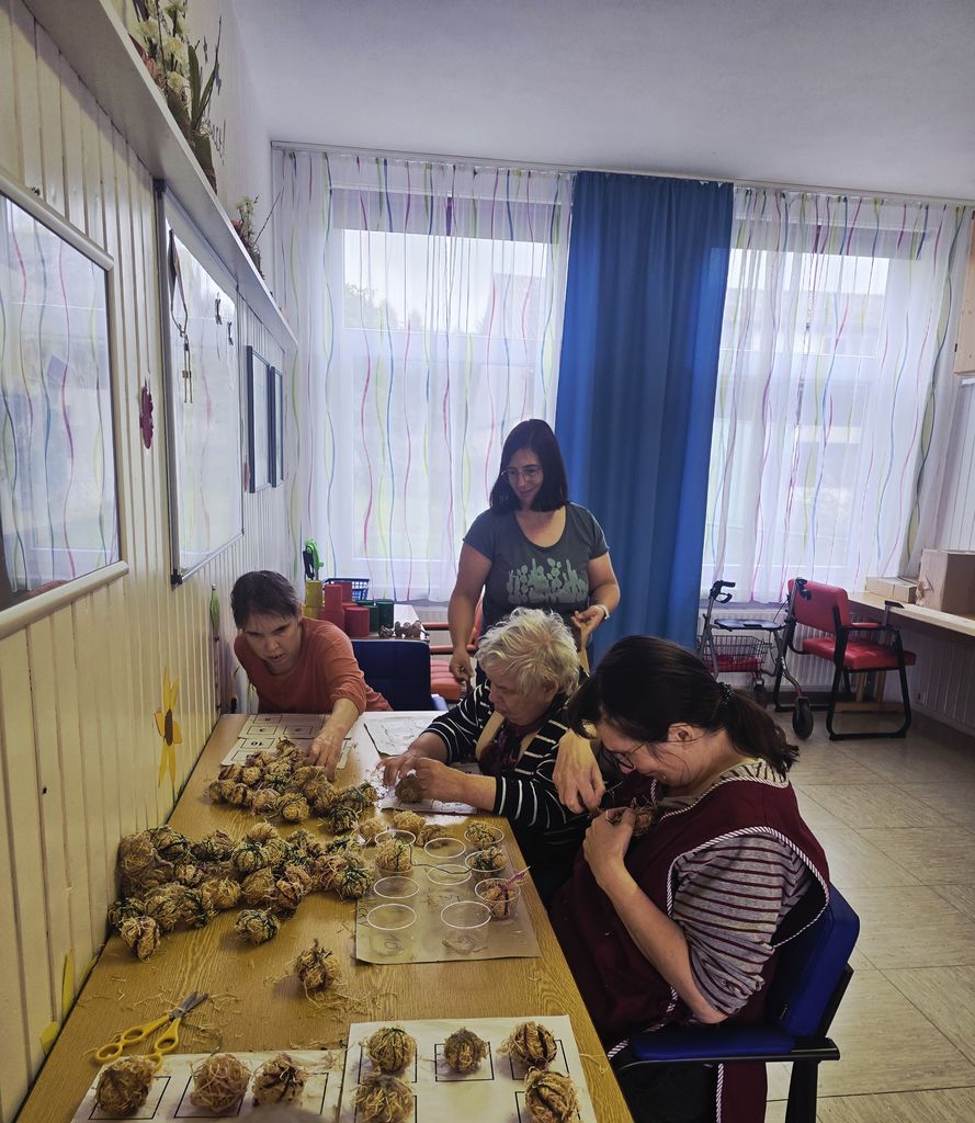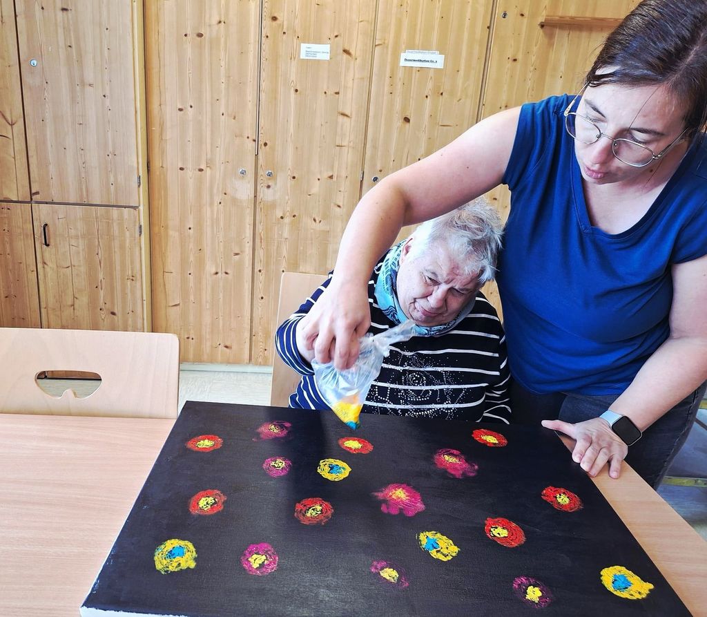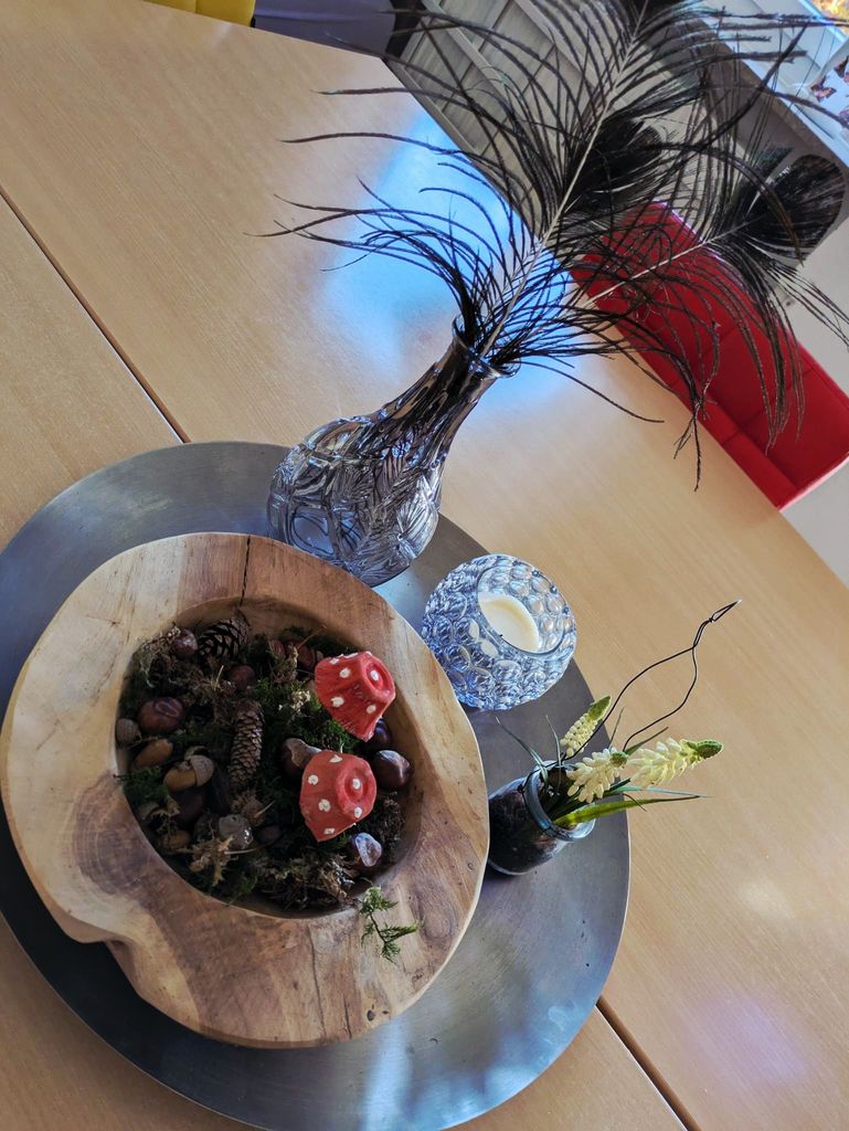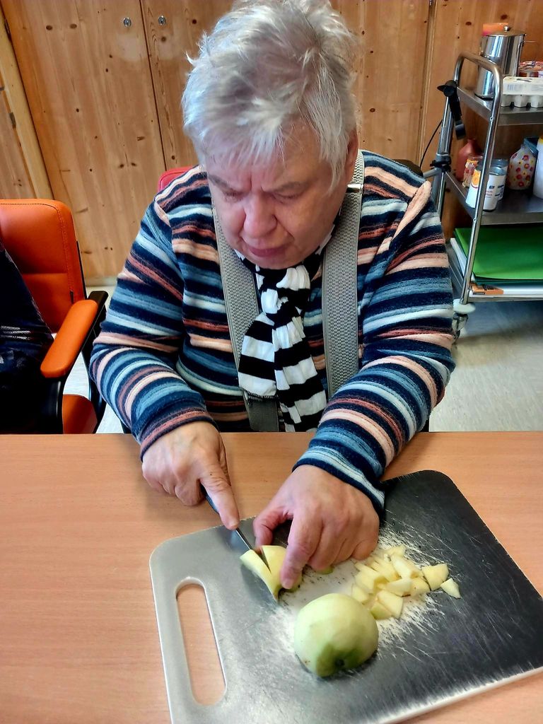 Kreativität, handwerkliche Fähigkeiten und Kochkünste waren gefragt :-)In den vergangenen Tagen haben wir wiedermal verschiedenste Sachen ausprobiert, erledigt. Unter anderem waren wir kreativ unterwegs, haben neue Bilder auf Leinwand gefertigt, die wir im Haus aufhängen können, neue Tischdeko für die Gruppen gestaltet. Natürlich haben wir auch wieder gebacken und gekocht. Wir beschäftigten uns mit dem Thema Erntedank, hörten hierzu eine Geschichte über den Apfel, und haben danach leckere Apfel- Muffins gebacken. Eine Mitarbeiterin brachte uns viele Quitten aus ihrem Garten mit, diese verarbeiteten wir zu Marmelade und Gelee, super lecker :-) Auch handwerklich unterstützten wir, z. B. beim Aufbau der neuen Schreibtischstühle. Aber auch unsere Anzünder haben wir weiterhin verpackt, denn die dürfen uns nicht ausgehen, die Nachfrage ist groß !
