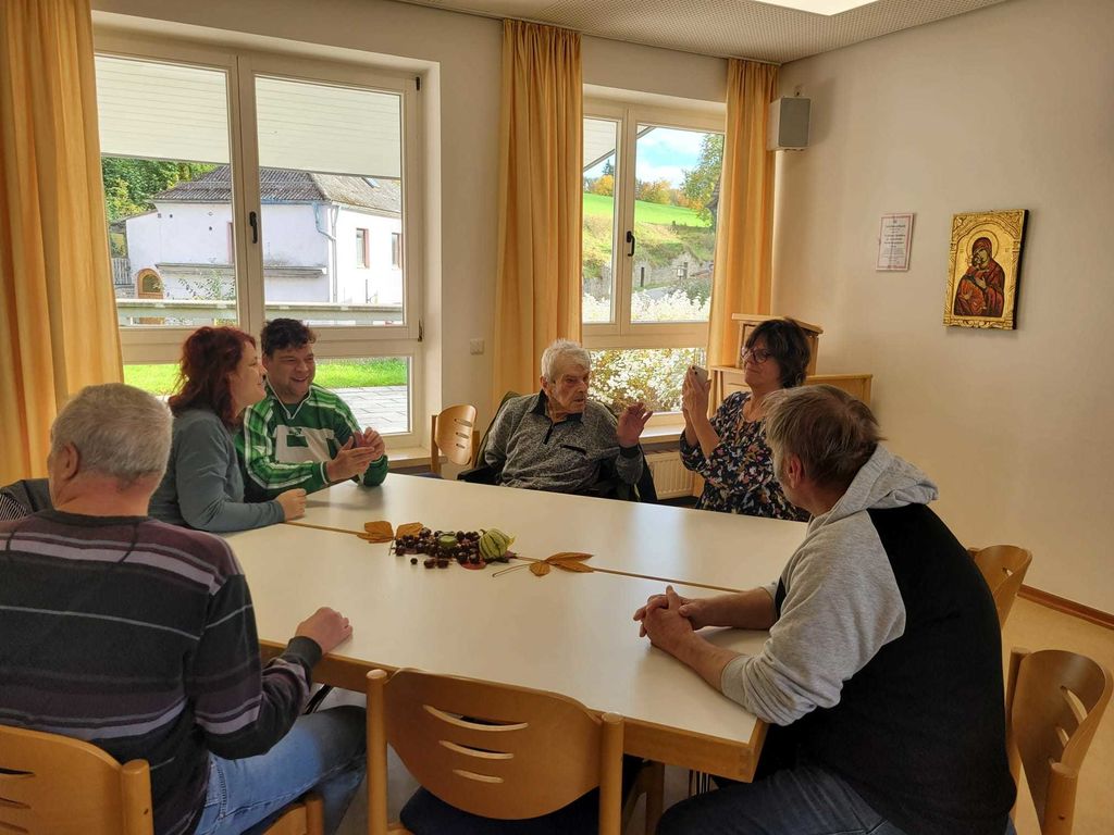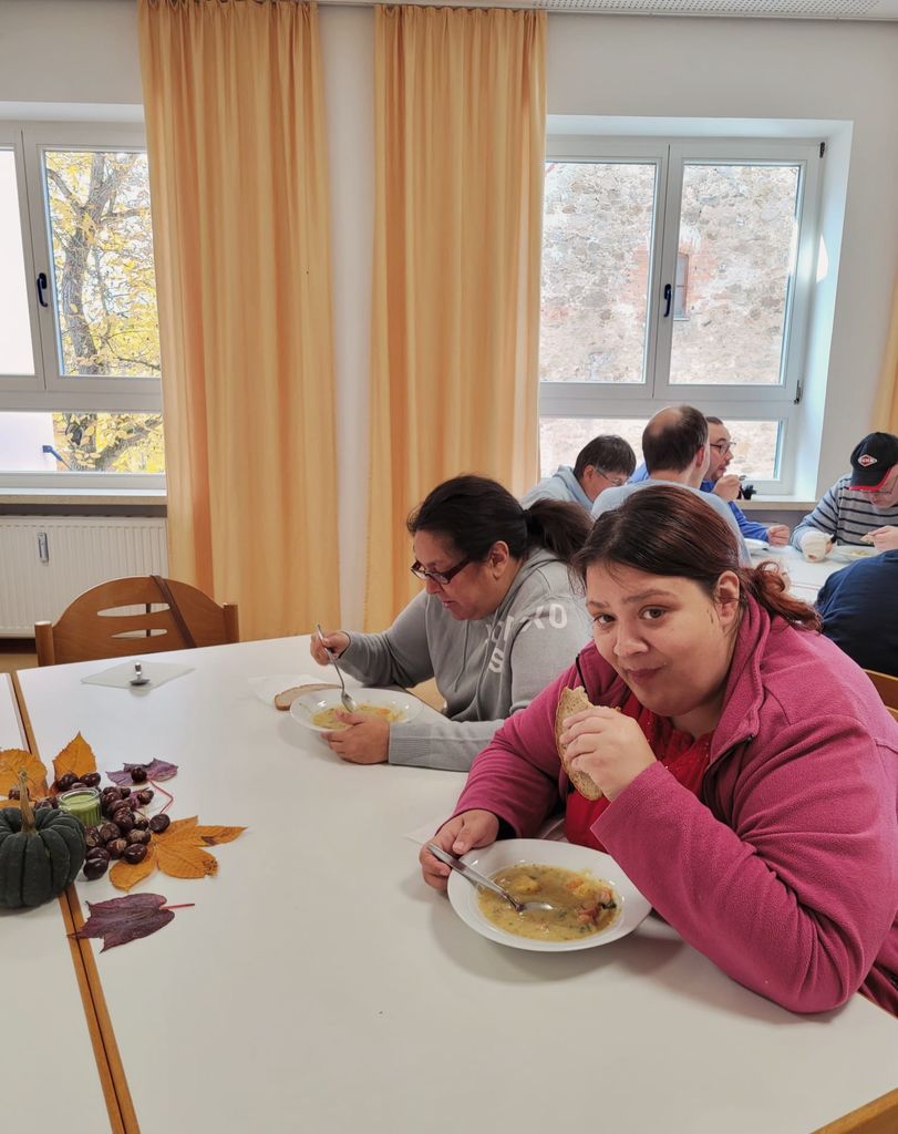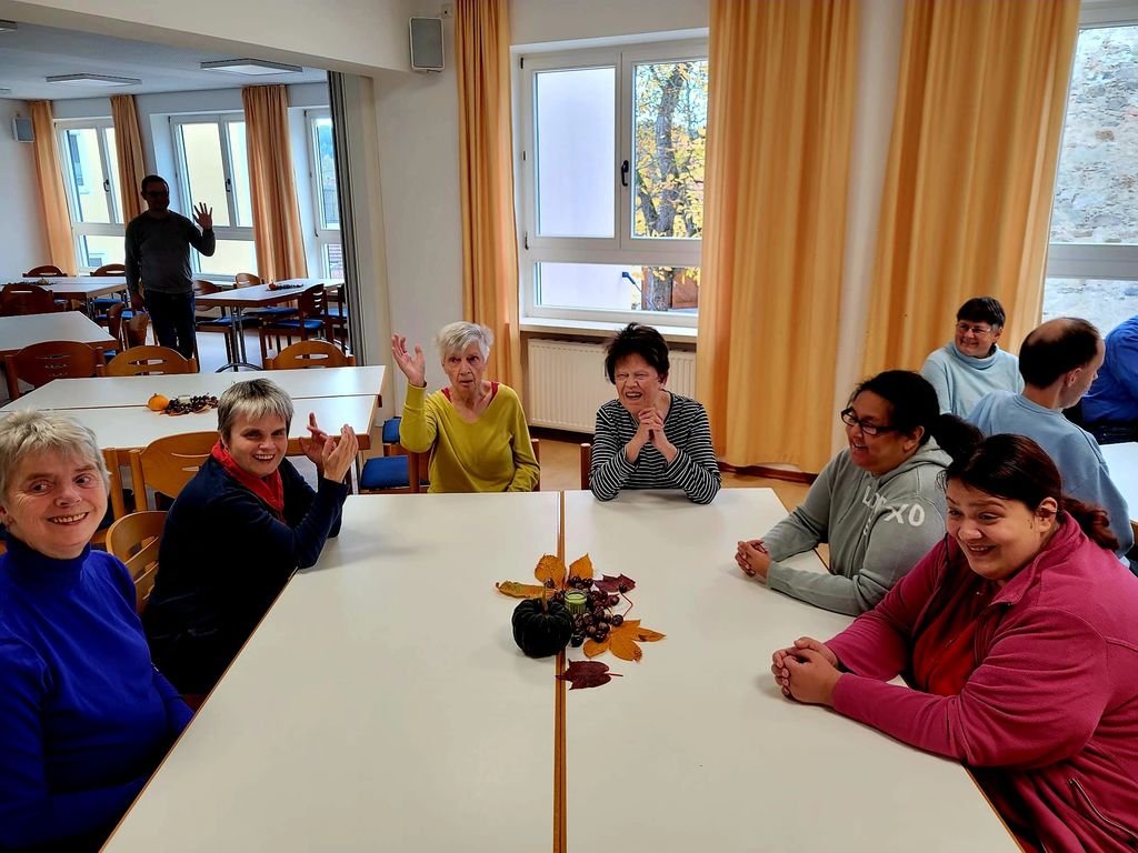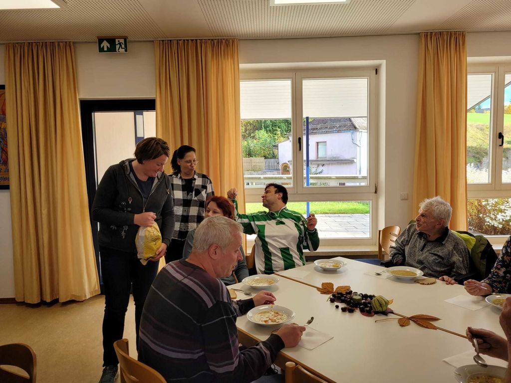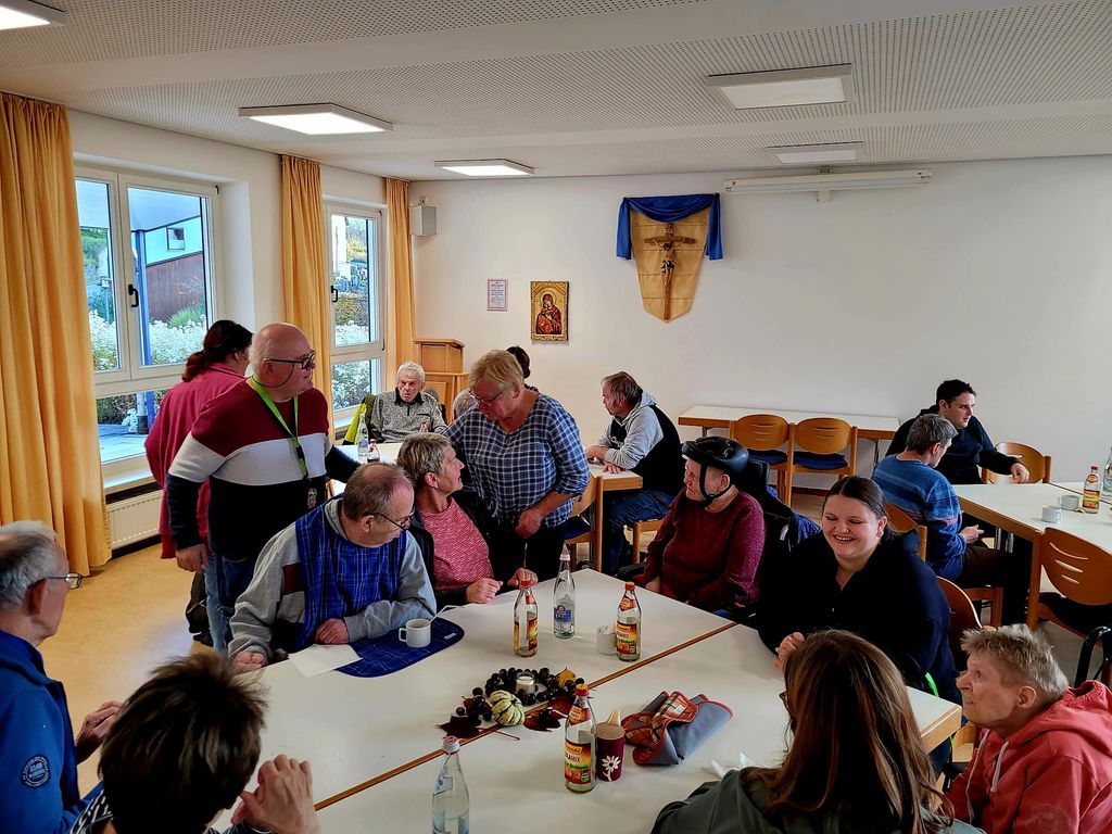 Wir luden ,so wie es bei uns schon Tradition ist, zum Erntedankfest ein.Gemeinsam mit unseren Freunden aus Vohenstrauß, Fuchsenschleife und Jägerhof begingen wir heute ein kleines Erntedank Fest. Herr Pfarrer Rösl und Herr Simon begrüßten alle Bewohner*innen und sprachen ein Dankgebet. Nachdem alle gemeinsam das Vater unser gebetet haben, gab es leckere selbstgemachte Kartoffelsuppe und frisch gebackenes Brot. Dies wurde von unserer TSM am Vortag zubereitet. Es waren wieder schöne, gesellige Stunden, mit guten Gesprächen und viel guter Laune.