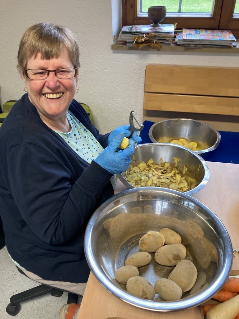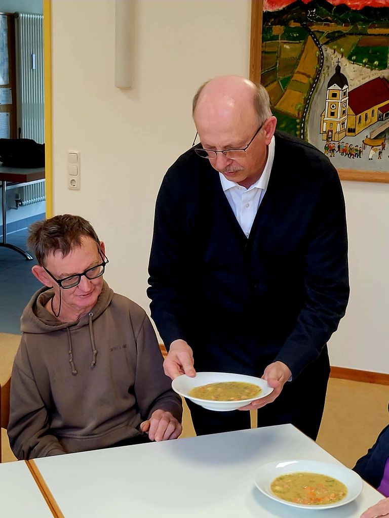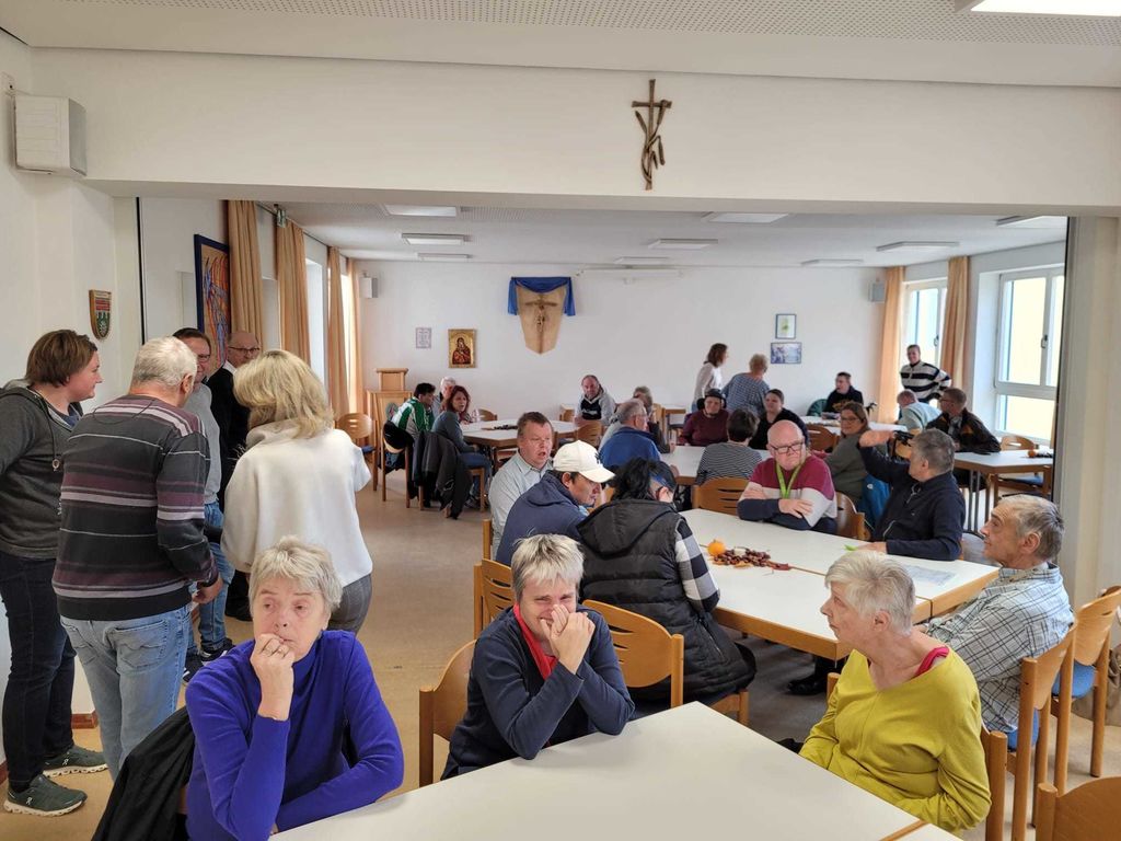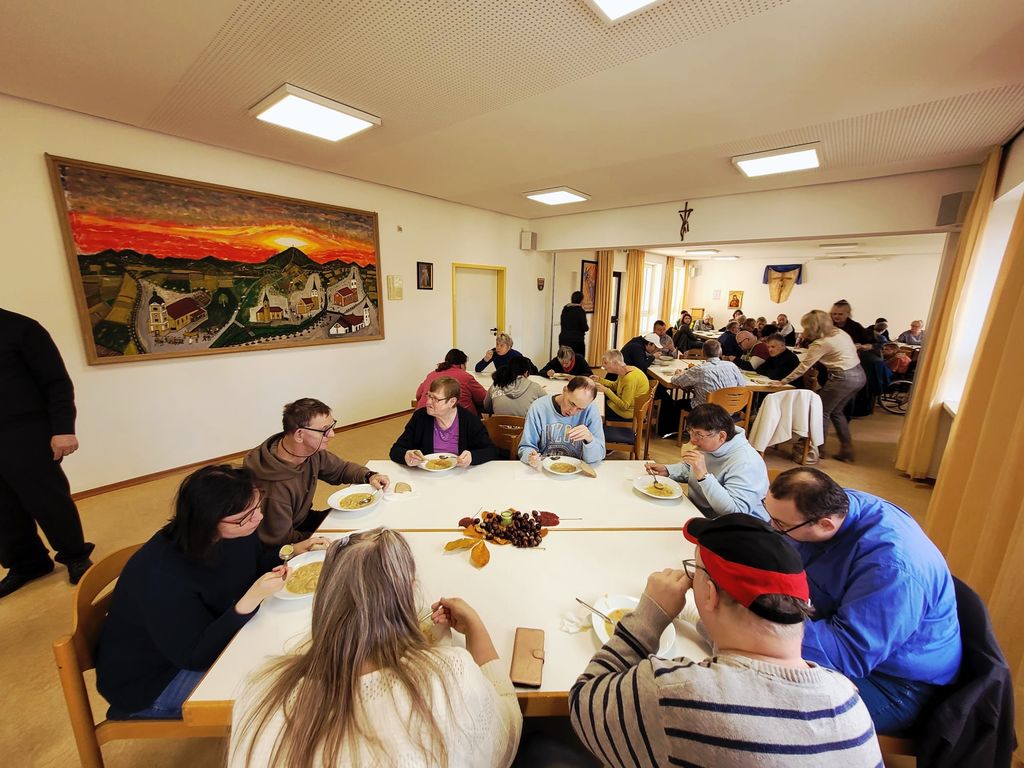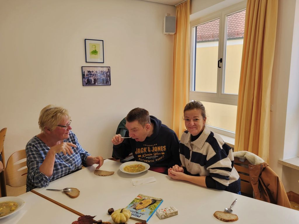 Wir luden ,so wie es bei uns schon Tradition ist, zum Erntedankfest ein.Gemeinsam mit unseren Freunden aus Vohenstrauß, Fuchsenschleife und Jägerhof begingen wir heute ein kleines Erntedank Fest. Herr Pfarrer Rösl und Herr Simon begrüßten alle Bewohner*innen und sprachen ein Dankgebet. Nachdem alle gemeinsam das Vater unser gebetet haben, gab es leckere selbstgemachte Kartoffelsuppe und frisch gebackenes Brot. Dies wurde von unserer TSM am Vortag zubereitet. Es waren wieder schöne, gesellige Stunden, mit guten Gesprächen und viel guter Laune.