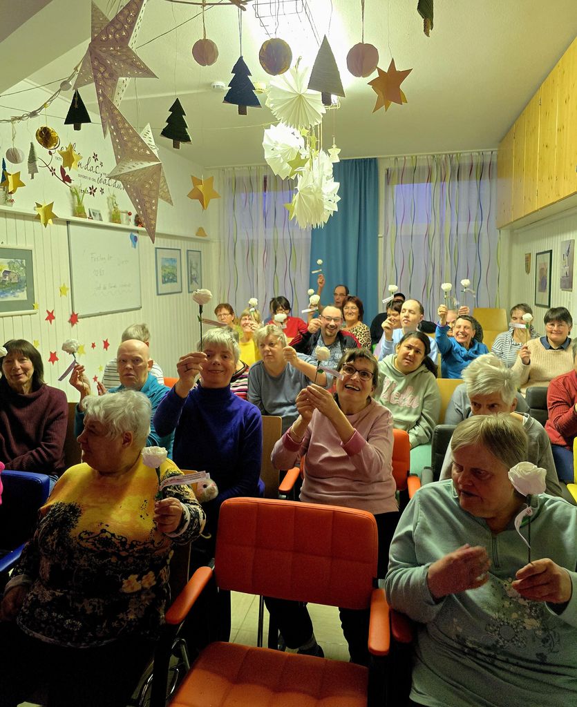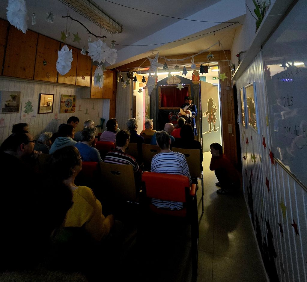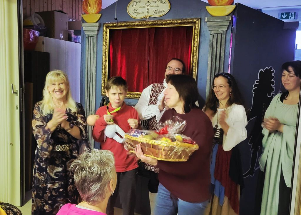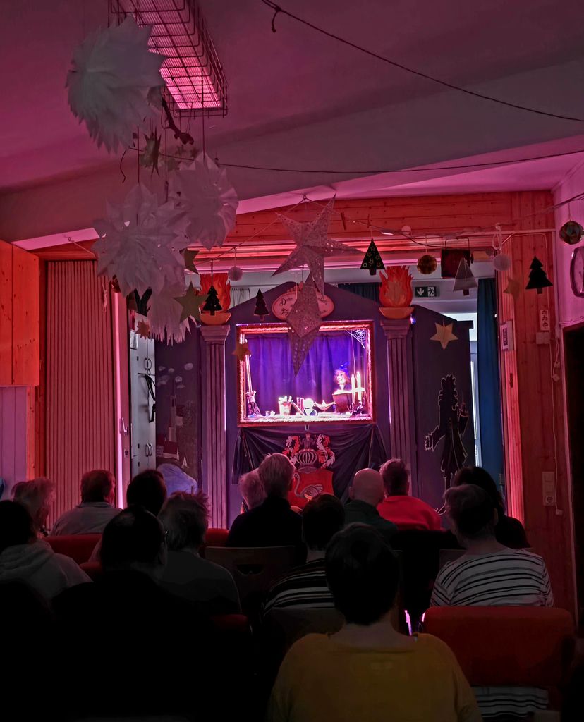 Voller Vorfreude empfingen wir heute das Figuren Theater des Dr. Eisenbarth Festspiel Vereins Oberviechtach :-)Heute konnten wir uns auf etwas ganz Besonderes freuen. Am Nachmittag fand bei uns im Haus Tannenschleife die Vorführung des Figuren Theaters Dr. Eisenbarth statt. Wir konnten 2 Stücke genießen, einmal " Dr. Eisenbarth verschreibt ein Gewitter" und " Der Zauberlehrling". Wir waren alle voll dabei, es war sehr schön und wir hatten viel Freude :-) In der Pause zwischen den beiden Stücken, verteilte der kleine,süße " Hagebutt" an jeden Zuschauer eine selbstgemachte Rose. Im Anschluss aßen wir gemeinsam noch zu Abend, es gab lecker Schnitzel, dies hatten wir uns gewünscht. Ein rießen Dankeschön an die "Puppenspieler", es war ein unvergeßlicher, toller Nachmittag, wir sehen uns sicher im neuen Jahr wieder !