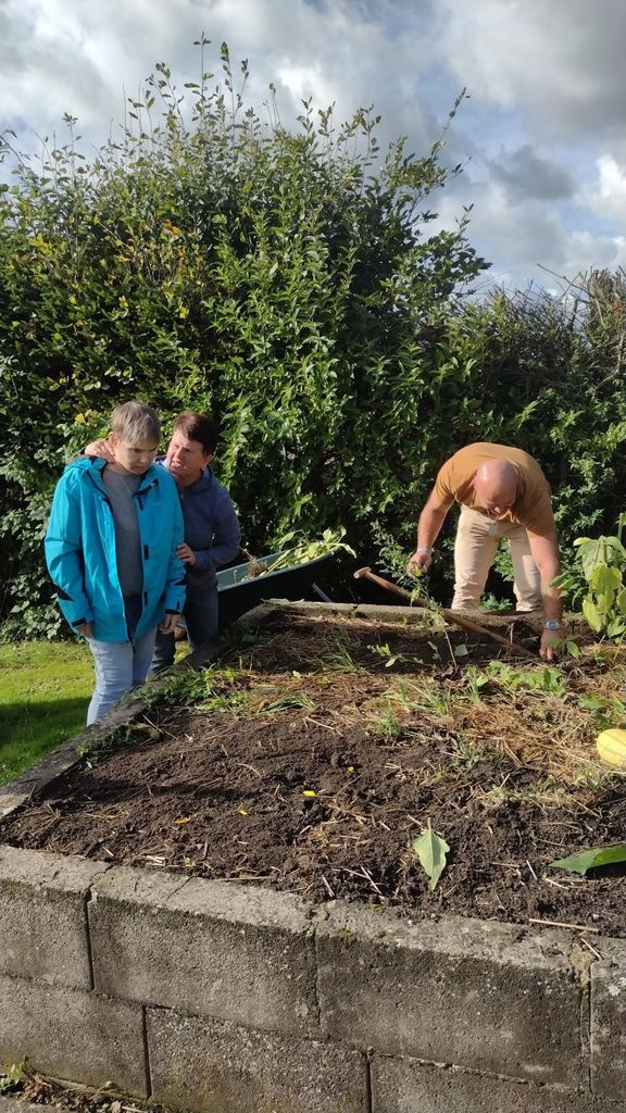 Start in die Vorbereitungen für die kalte Jahreszeit :-)Heute haben wir begonnen unsere Beete und Außenanlagen für den Winter vorzubereiten. Mit tatkräftiger Unterstützung von unserem Fachdienst Stefan, der uns beim umgraben geholfen hat, da es für uns einfach zu schwer war. Die nächsten Wochen haben wir hier sicher noch einiges zu erledigen, aber es macht Spaß, wir sind an der frischen Luft und wir sehen, was wir geschafft haben.
