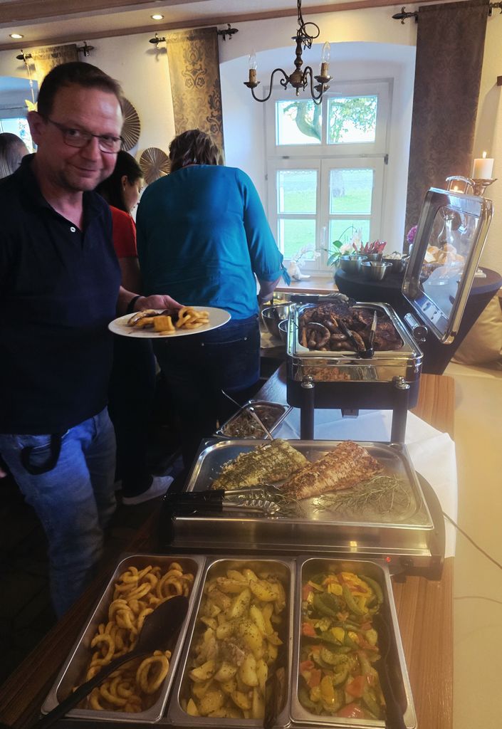 Mal wieder außerhalb der Arbeit gemeinsam Zeit verbringen :-)Bei herrlichem Wetter trafen wir uns alle im Gasthof Heuberger in Atzenhof. Gemeinsam ein paar entspannte Stunden außerhalb der Arbeit verbringen, Zeit haben für gute Gespräche, das gönnten wir uns heute. Es war ein super schöner, lustiger Abend, mit leckerem gegrillten Fleisch, Fisch und tollen Beilagen ließen wir es uns gut gehen. Das machen wir sicher bald mal wieder, es stärkt uns als Team und wir tanken Kraft für unsere Arbeit :-)
