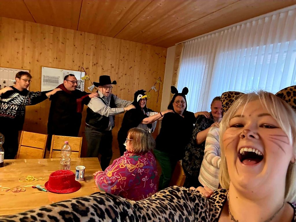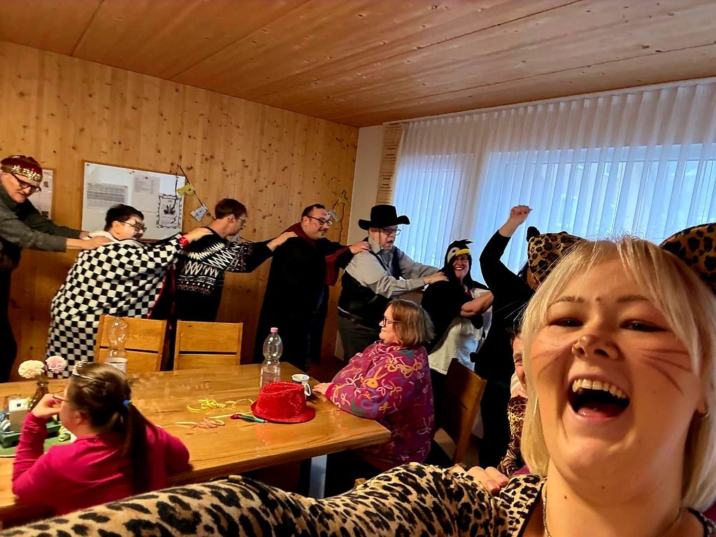 Hausfasching im Haus OberviechtachEIn voller Erfolg :-) Wir feierten heute bei uns im Haus eine tolle Faschingsparty. Wir tanzten ausgelassen, sangen zu Partymusik und hatten viel Spaß. Schon am Abend vorher starteten wir mit den Vorbereitungen, denn wir hatten Lust auf selbsgemachten Nudelsalat, und auch unsere Kostüme legten wir bereit. Die "fünfte" Jahreszeit bringt uns einfach immer wieder viel Freude!