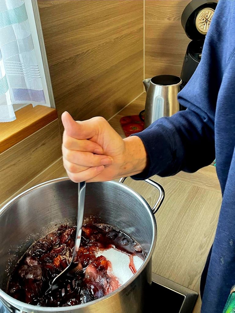 Ausflüge, Kochen, Dekorieren- so nutzten wir das letzte Wochenende im SeptemberNach einigen kalten Regentagen nutzten wir das sonnige Herbstwetter zu einem Besuch und Spaziergang beim Wildpark. Eine Strecke ging über Wurzeln und Steine, eine war durch ihren Anstieg eine Herausforderung. Doch mit kleinen Pausen konnten wir beides toll bewältigen. Nebenbei sammelten wir zur Verschönerung unseres Treppenhauses einen schönen"Waldstrauß". In diesem Jahr gibt es viele Zwetschgen, da wir nicht alle essen konnten, haben wir die letzten Früchte zu einer leckeren Marmelade verarbeitet, es hat Spaß gemacht und es roch super lecker in unserer Küche.
