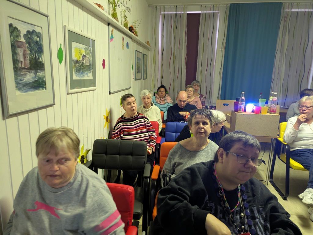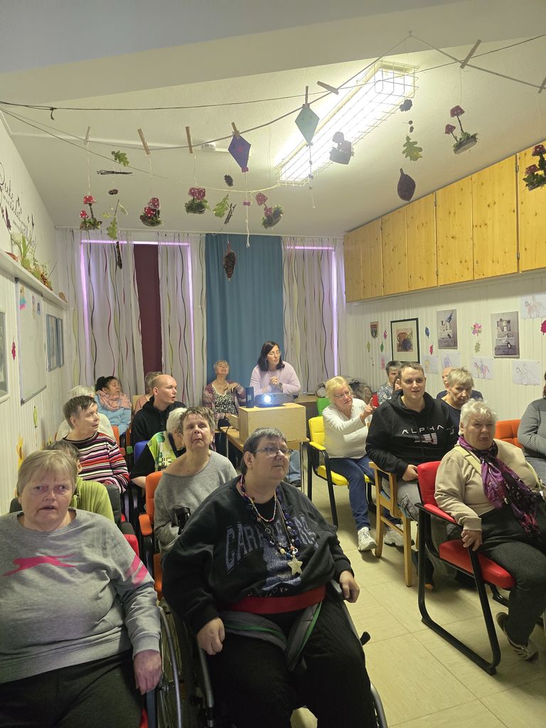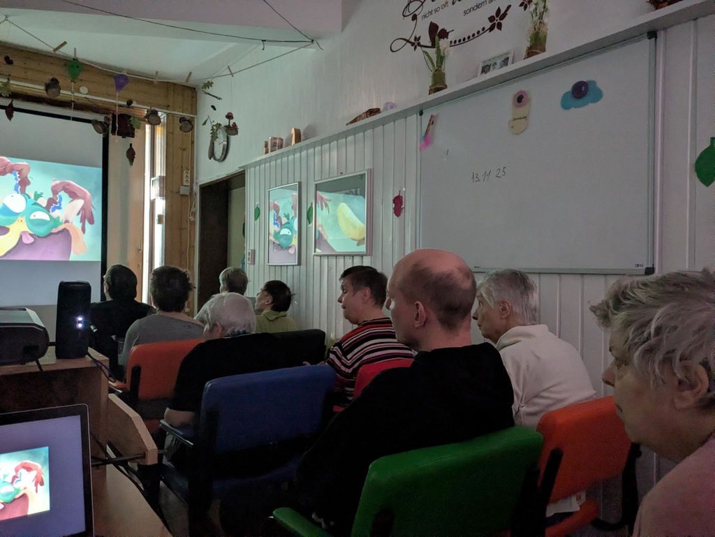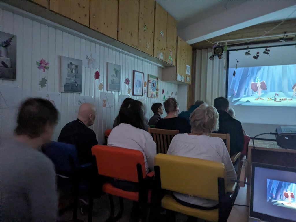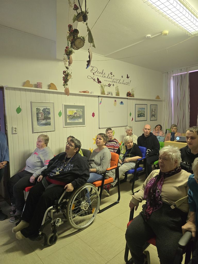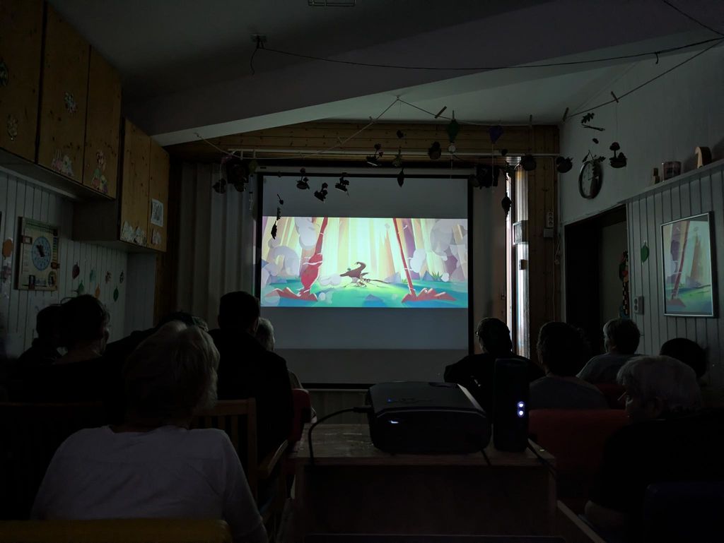 Kino- Nachmittag in der Tannenschleife mit Freunden.Heute Nachmittag fand unser langersehnter Kino - Nachmittag statt. Mit unseren Freunden aus Vohenstrauß, schauten wir den Film: "Raus aus dem Teich" . Eine Entenfamilie geht auf weite Reise, und es beginnt für sie ein tolles Abenteuer mit Spannung, Spaß und viel Freude etwas Neues zu erleben. Wir, die BewohnerInnen fieberten von Anfang bis Ende mit und ließen uns dabei so einige Knabbereien schmecken. Natürlich haben wir alle beschlossen, bald wieder gemeinsam einen tollen Film zu schauen. Es war ein voller Erfolg !