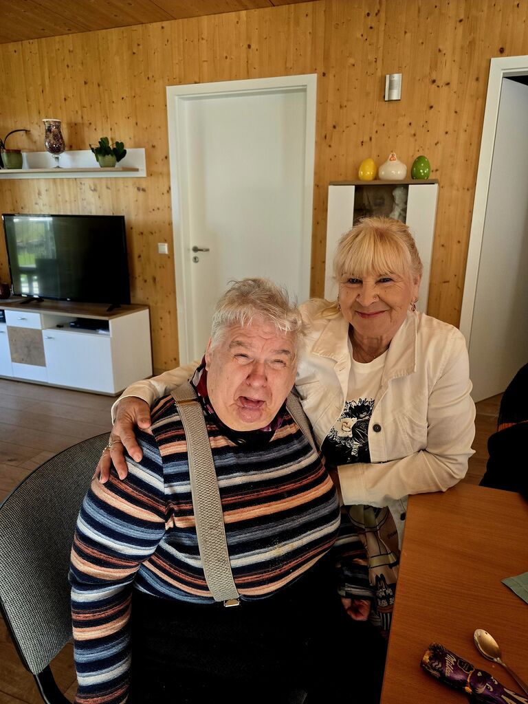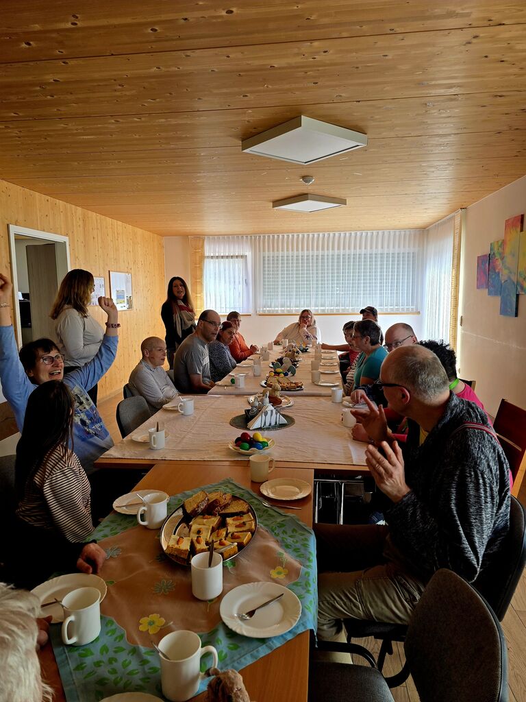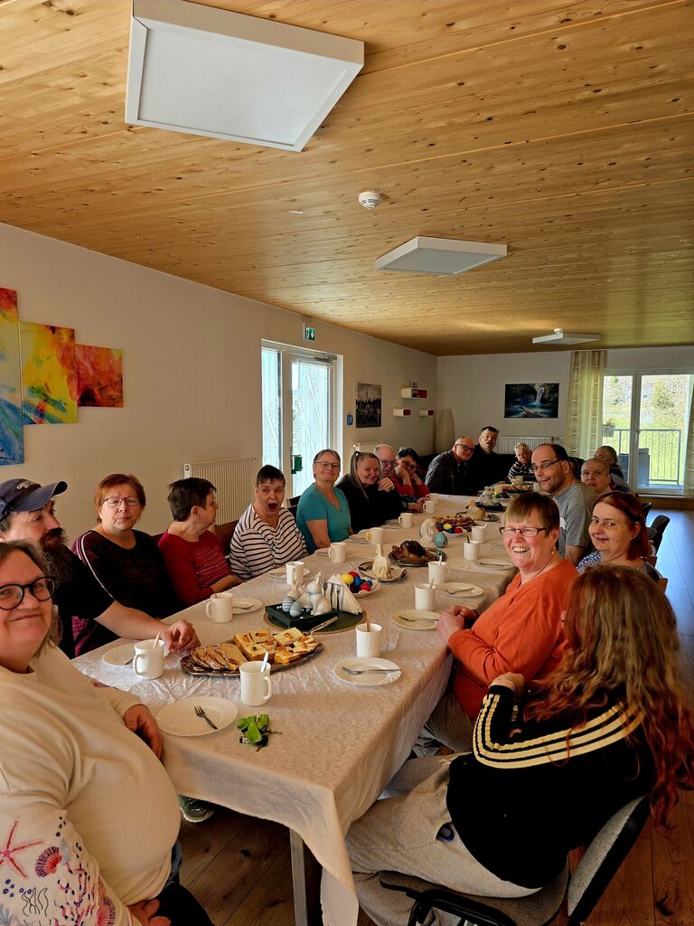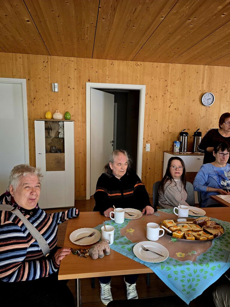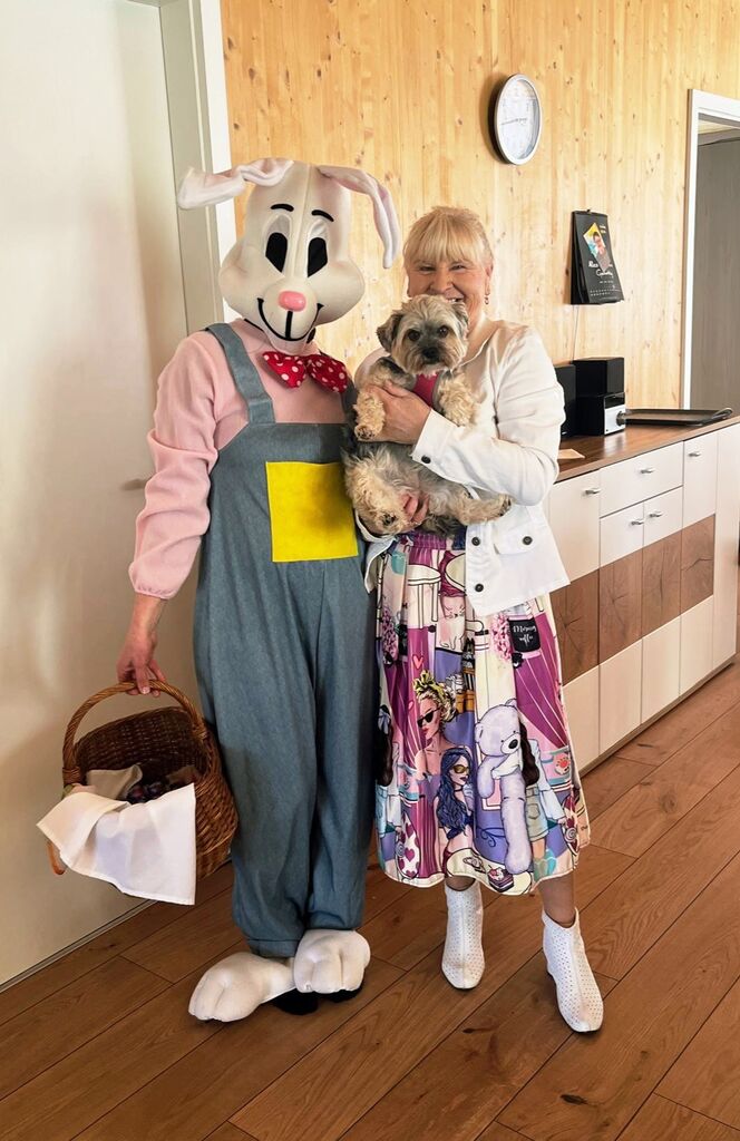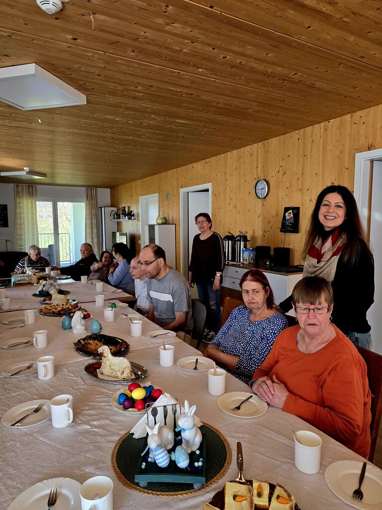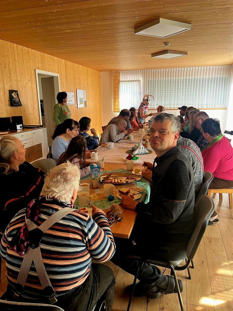 Wir verabschieden den "Osterhasen" :-)Heute, am Ostermontag trafen wir uns alle nochmal gemütlich zu Kaffee und Kuchen. (Natürlich war der Kuchen wieder selbst gebacken). Gemeinsam mit unseren Gästen aus der Tannenschleife, ließen wir uns den Kuchen schmecken. Auf einmal ging die Tür auf, und was sahen wir ? Der "Osterhase" schaute noch einmal kurz vorbei und hatte für uns in seinem Korb etwas Süßes dabei. Wir freuten uns natürlich sehr und verabschiedeten den "Osterhasen" gebührend. Rundum waren es für uns sehr schöne, abwechslungsreiche aber auch erholsame Osterfeiertage!