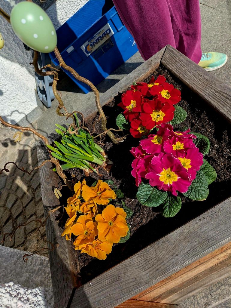 Super Sonnenschein, hieß für uns, wieder viel mehr draußen sein :-)In dieser Woche haben wir das schöne Wetter natürlich wieder genutzt. Wir haben gebastelt, um draußen schön zu dekorieren, waren viel spazieren und haben die 1. Frühlingsblumen gepflanzt. Feierten Renate ihren Geburtstag, und chillten einfach auch mal im Sonnenschein.