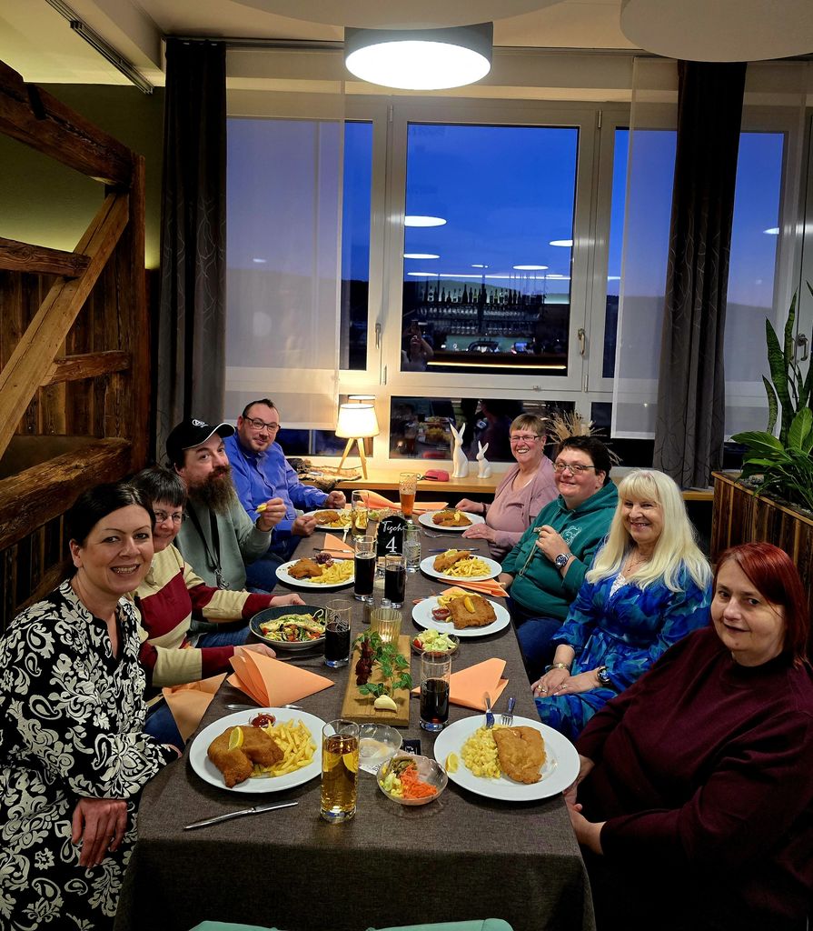 Verabschiedung und Begrüßung bei einem gemeinsamen Essen :-)Wie doch die Zeit vergeht, 4 Jahre "Amtszeit" sind vorbei, daher liefen Ende des letzten Jahres im gesamten Heimbereich Tannenschleife / Oberviechtach die Vorbereitungen für die Neuwahlen unserer Bewohnervertretungen. Anfang 2026 standen die neuen Kanditaten fest. Nachdem alle drei zugestimmt haben, das Amt zu übernehmen, trafen wir uns nun alle für eine "offizielle Übergabe". Wir bedanken uns herzlich bei Iris, Jürgen und Irmtraud für ihre tolle Arbeit in den vergangenen Jahren, und begrüßen unsere neuen Bewohnervertretungen Patrick, Anita und Bernadette. Bei einem guten gemeinsamen Essen und dem schönen Ambiente des Emil- Kemmer Hauses, nutzten wir die Zeit auch für einen Austausch, der "alten" und der "neuen" Bewohnerverter, und wählten den, die neue Vorsitzende. Bernadette wird den Vorsitz unserer neuen Bewohnervertreter übernehmen. Ein großes Dankeschön an alle, wir freuen uns auf eine gute Zusammenarbeit in den kommenden Jahren mit unseren "neuen" Bewohnervertreter-/Innen.