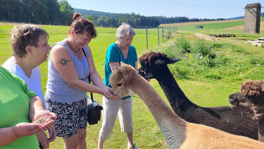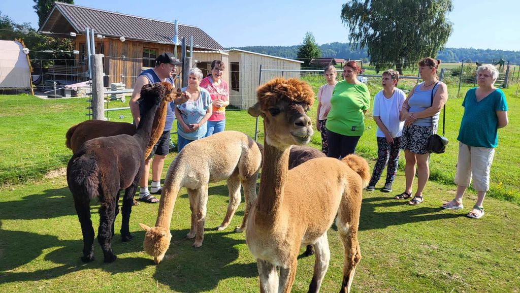 Heute ging es in den Wildpark und zu den AlpakasSchon am Morgen freuten wir uns auf unsere Ausflüge. Das Wetter war genau passend, kein Regen und nicht zu heiß :-) Wir fuhren nach Höllohe in den Wildpark. Dort gibt es fast 200 Tiere aus rund 21 Arten, unter anderem auch Fasane, Störche und Schnee- Eulen. Wir waren auch auf dem Konradenhof in Gaisheim, ein kleines Dorf bei Moosbach, dort konnten wir Alpakas beobachten, füttern und streicheln. 2013 zogen die ersten Alpakas auf dem Hof ein, und sind seither nicht mehr wegzudenken, erzählten uns die Besitzer. Es gab dort eine leckere Brotzeit im Tippi, wieder mal schöne, entspannte Stunden für uns. Später ließen wir den tollen Urlaubstag mit einem gemeinsamen Grillabend ausklingen.