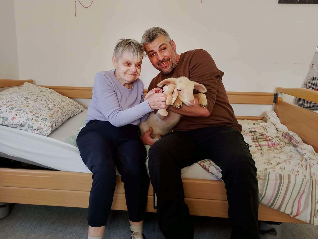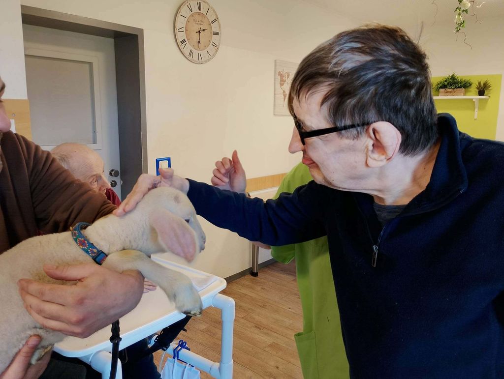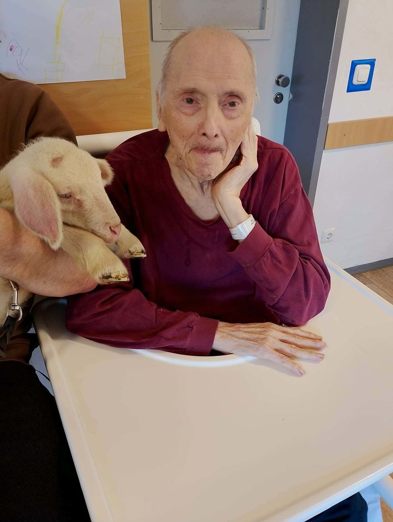 Das Lämmer-Besuchsprogramm kann startenAlle bei Dr. Loew lieben die Tierbesuche in den Heimen wie hier auf den Bildern zu sehen ist. Wir hatten ja schon öfters Besuch von den tollen Alpakas oder Ponys, freuen uns auch auf weitere Begegnungen. Aber der Besuch des herzallerliebsten Lämmchen unseres Kollegen Florian, war ein Highlight für unsere Bewohner. Es ist eine besondere Freude das Lachen der Menschen zu sehen, sobald Tiere da sind. Es war sehr berührend, wie dieses kleine Wesen auch Menschen, die sich sonst sehr in sich selbst zurückgezogen haben, wieder zum Sprechen brachte. Danke von Herzen lieber Florian für dieses tolle Erlebnis für uns alle.