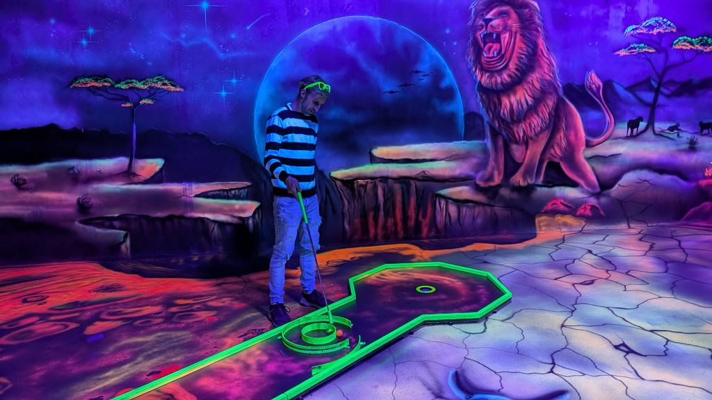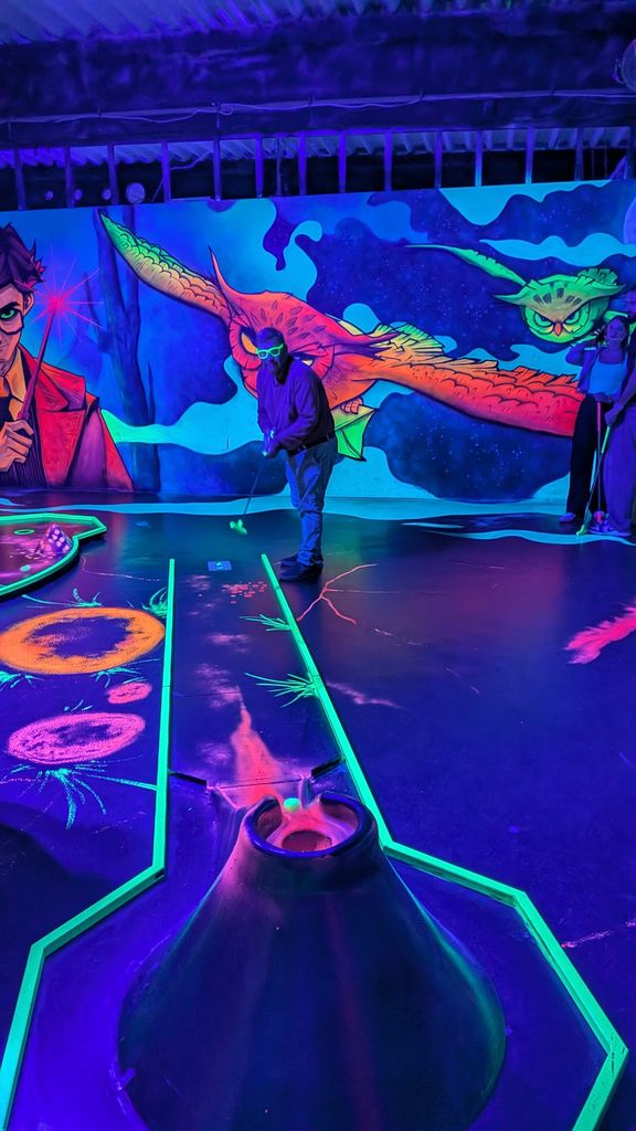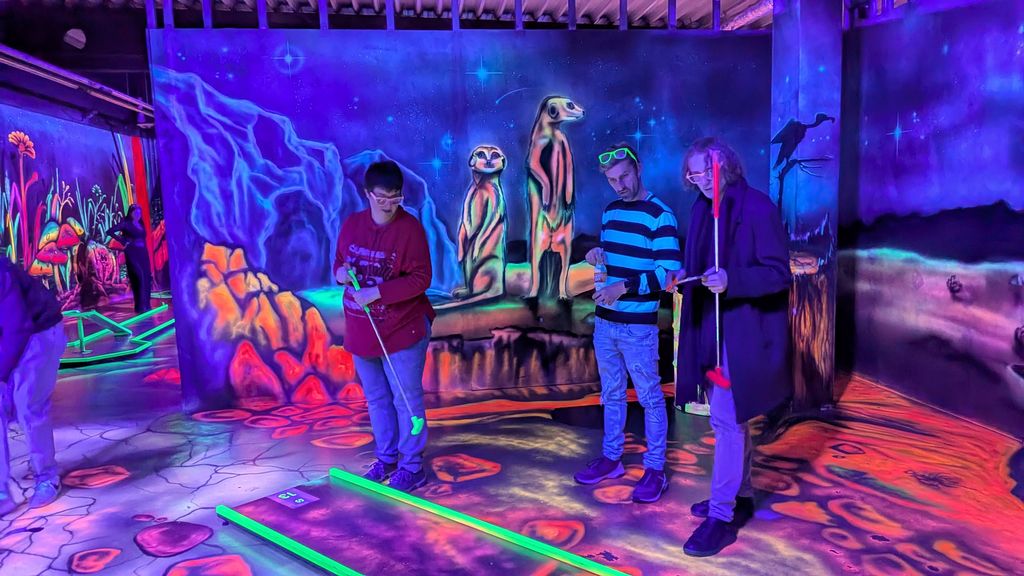 Zusammen besuchten das Haus Marktplatz und Schinner die 3D Schwarzlicht- und Neon Minigolfanlage in Neutraubling.