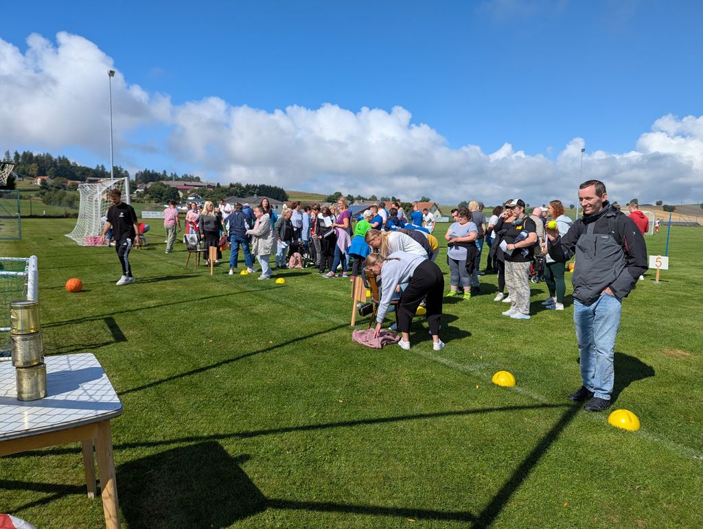 Dies konnte man auf dem gut organisierten und abwechslungsreichen Sport- und Spielefest erleben. Es gab viele Spielstationen, auf denen jedermann seine Geschicklichkeit oder auch sein Glück ausprobieren konnte. Es machte allen Spaß, wie man an den ganzen strahlenden Gesichtern rundum sehen konnte. Nach den Spielen wurde man gut verköstigt mit leckeren Kuchen und Kaffee oder herzhaft mit Pommes, Currywurst, Steaksemmel etc.