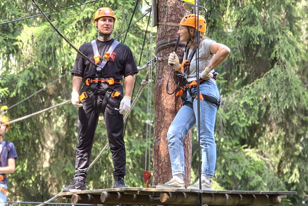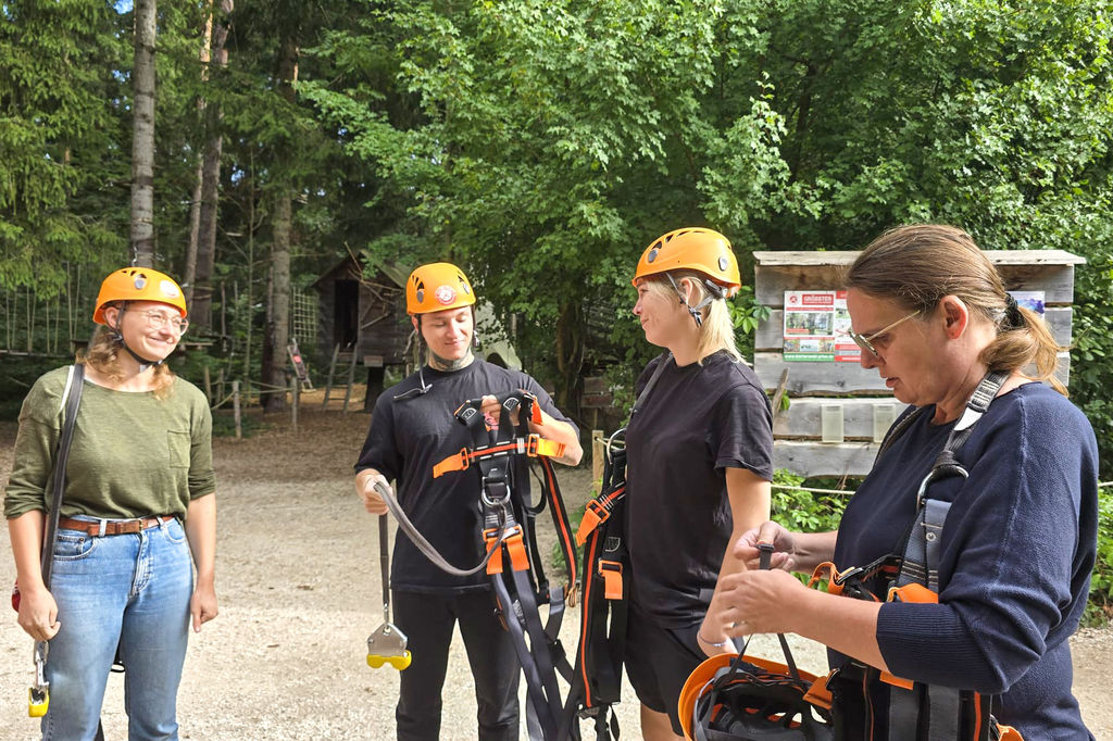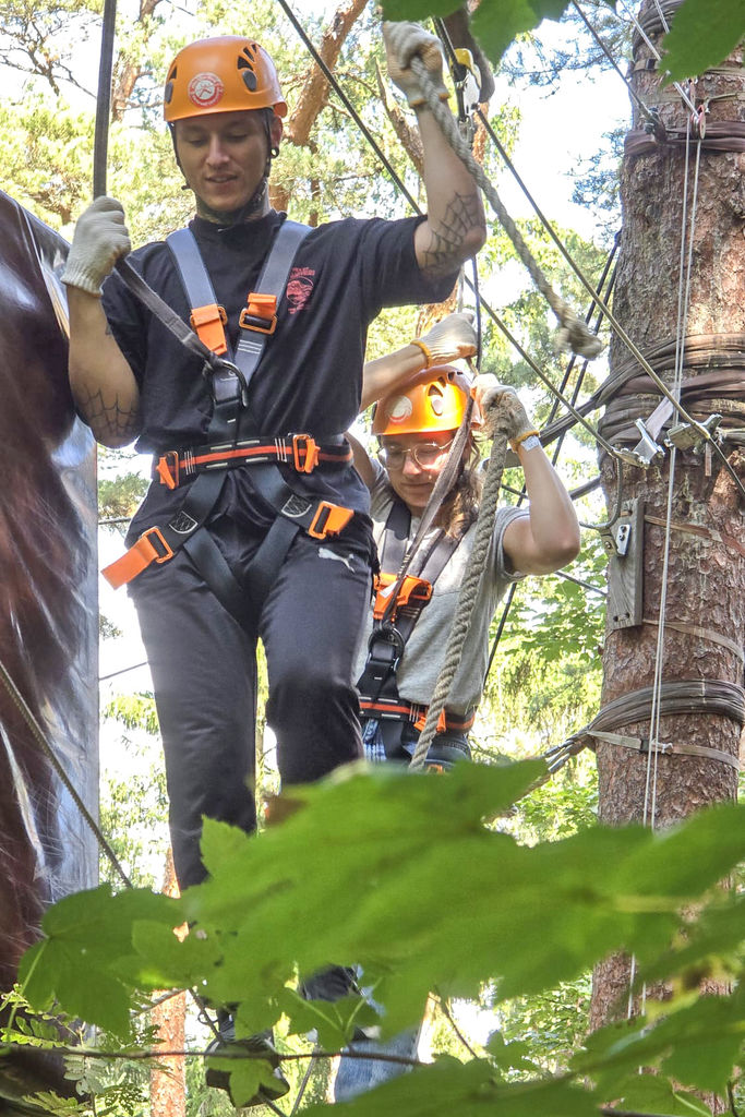 Neben dem sportlichen Ehrgeiz kam auch der Spaß nicht zu kurz. Gemeinsam wurde gelacht, angefeuert und nach jeder geschafften Station ein wenig Stolz gesammelt. Der Ausflug hat sich richtig gelohnt – auch wenn der Muskelkater noch eine kleine Erinnerung an das Abenteuer in luftiger Höhe war.