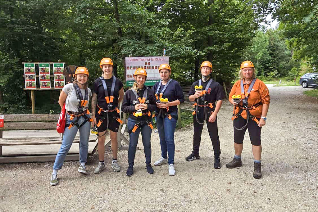 Am Donnerstag ging es für sechs Mitarbeitende hoch hinaus: Beim Betriebsausflug im Kletterwald Vaterstetten stellten sie Mut, Geschick und Teamgeist unter Beweis.Nach einer kurzen Einweisung startete die Gruppe motiviert in die verschiedenen Parcours des Kletterwaldes. Von leichteren Strecken bis hin zu anspruchsvolleren Elementen war alles dabei – und so konnten die Teilnehmenden zahlreiche unterschiedliche Routen ausprobieren. Drei besonders Mutige wagten sich sogar an den schwierigsten Parcours und meisterten die Herausforderung mit viel Einsatz.